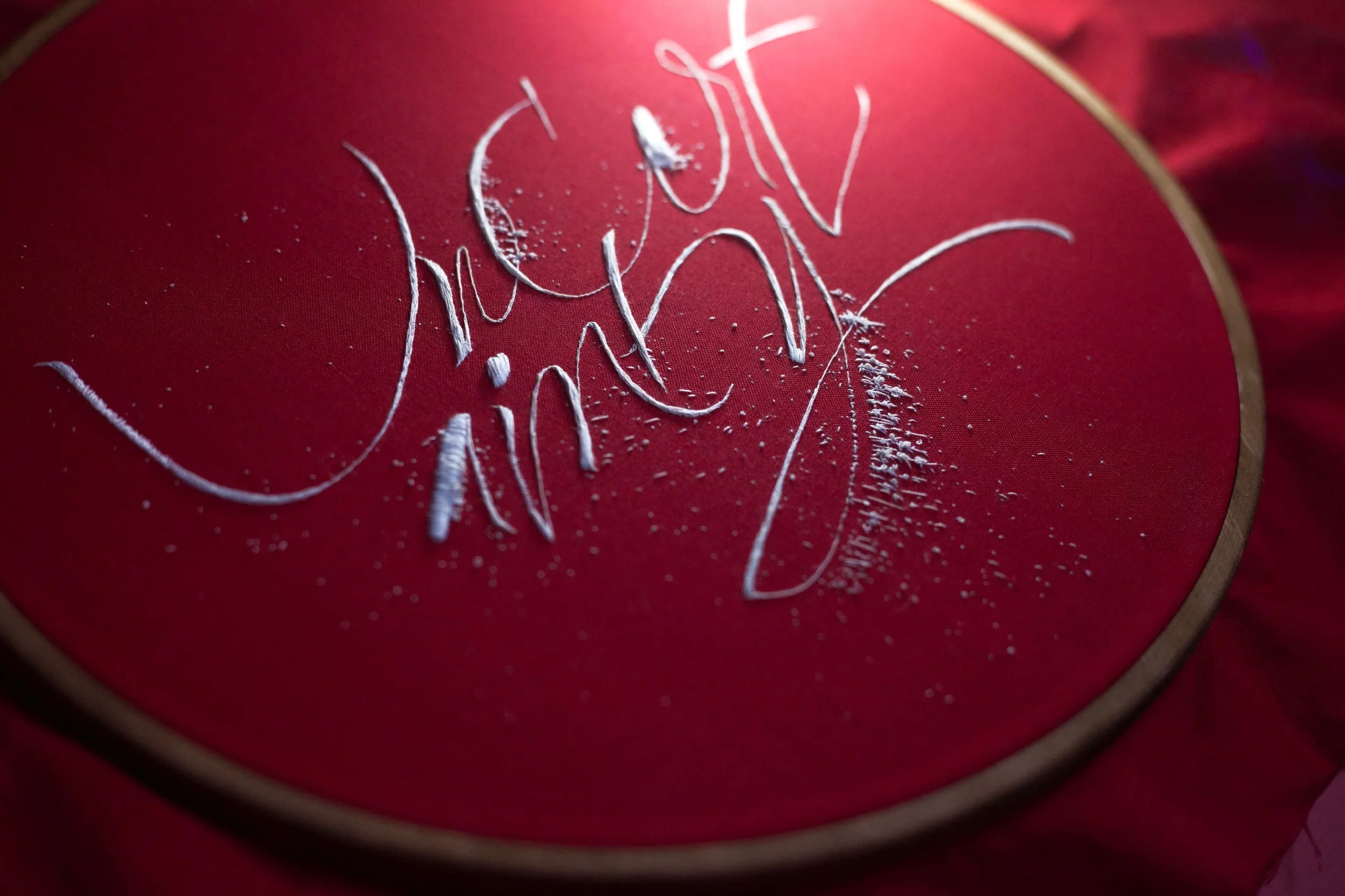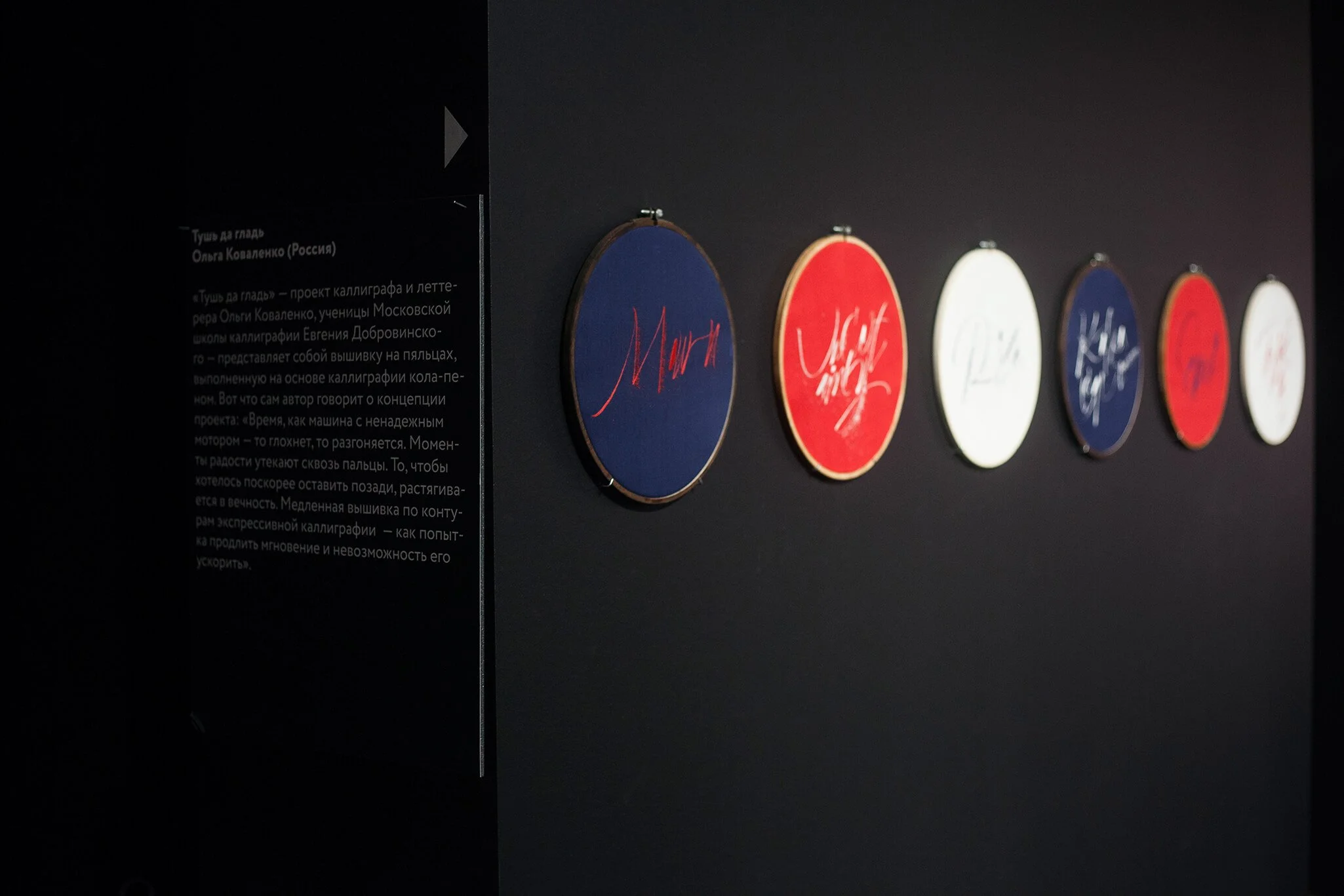The main idea in this project was to connect two arts — the fast (expressive calligraphy) and the slow one (hand embroidery). It makes you think about the deceitfulness of time.